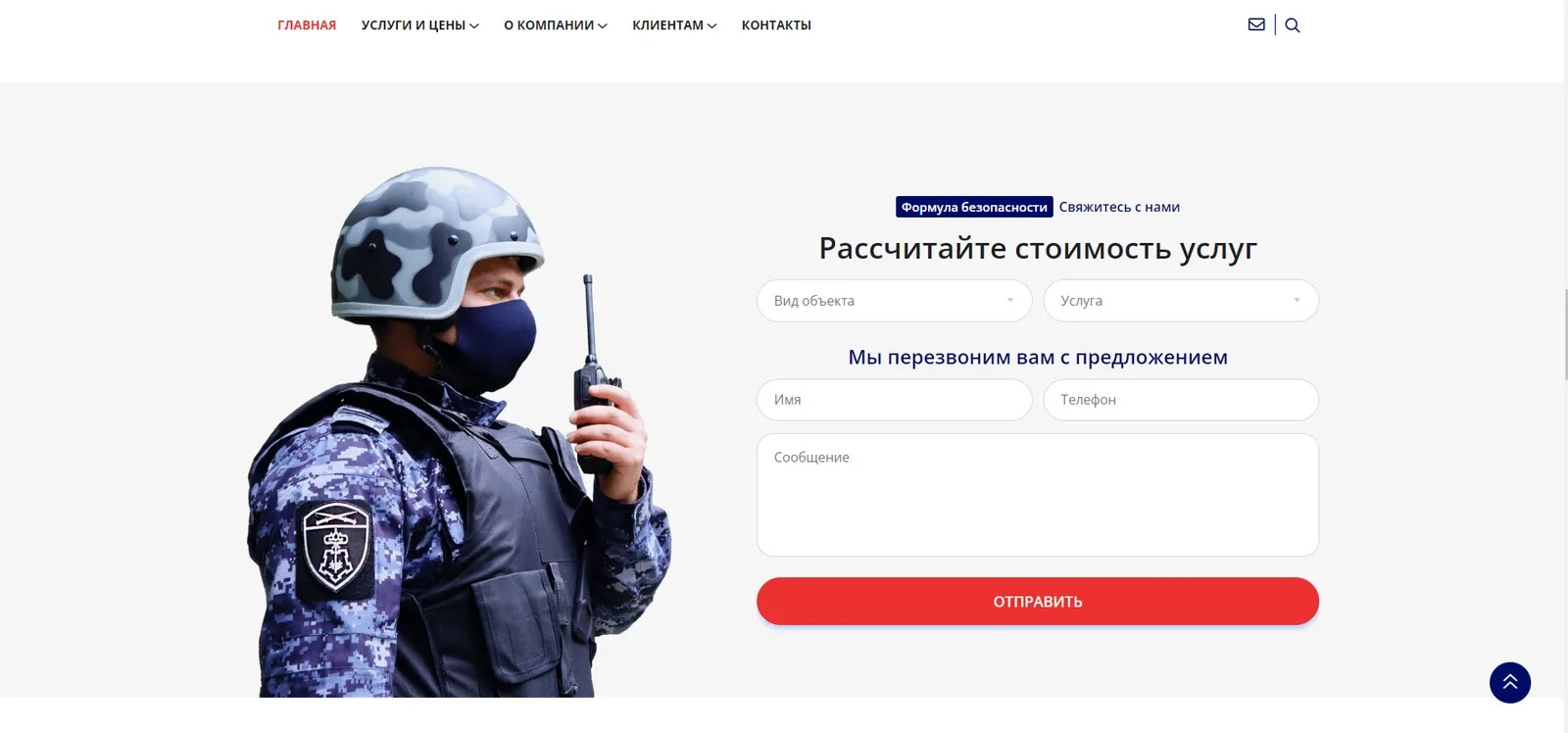 На сайте присутствуют функционал форм обратной связи, с помощью которых пользователь может оставить заявку на расчёт охранных услуг в удобное для него время.